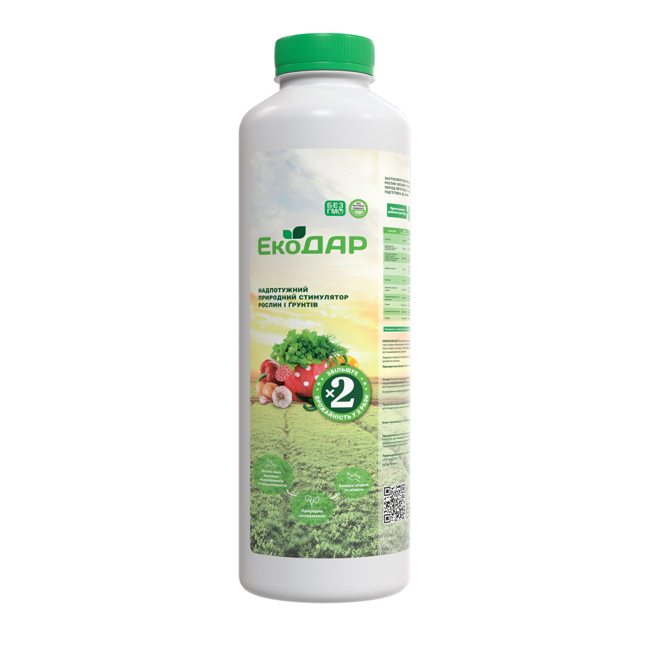 EкоДАР забезпечує комплексне харчування рослин, необхідними поживними речовинами, сприяючи покращенню їхніх фізіологічних процесів та розвитку. Це веде до збільшення врожайності, покращення якості плодів, а також збільшення стійкості рослин до стресових умов.
