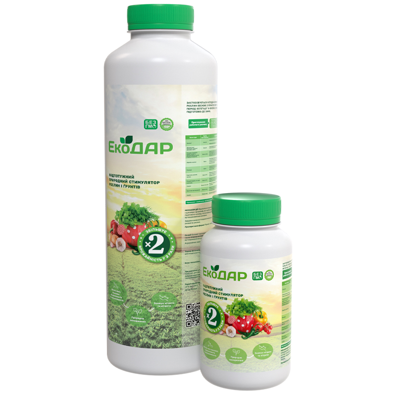 EкоДАР забезпечує комплексне харчування рослин, необхідними поживними речовинами, сприяючи покращенню їхніх фізіологічних процесів та розвитку. Це веде до збільшення врожайності, покращення якості плодів, а також збільшення стійкості рослин до стресових умов.