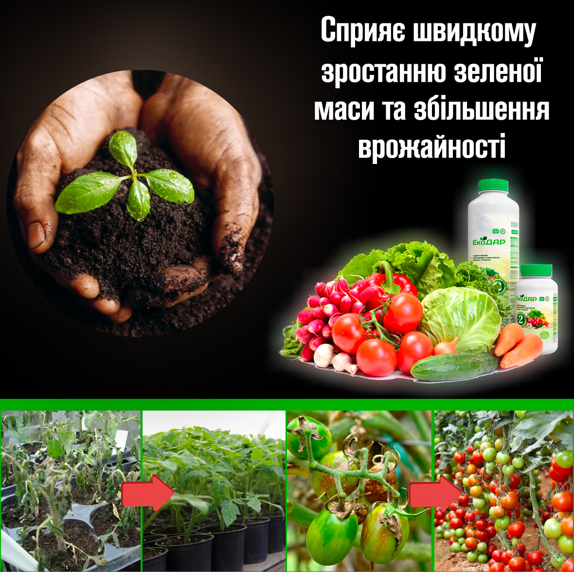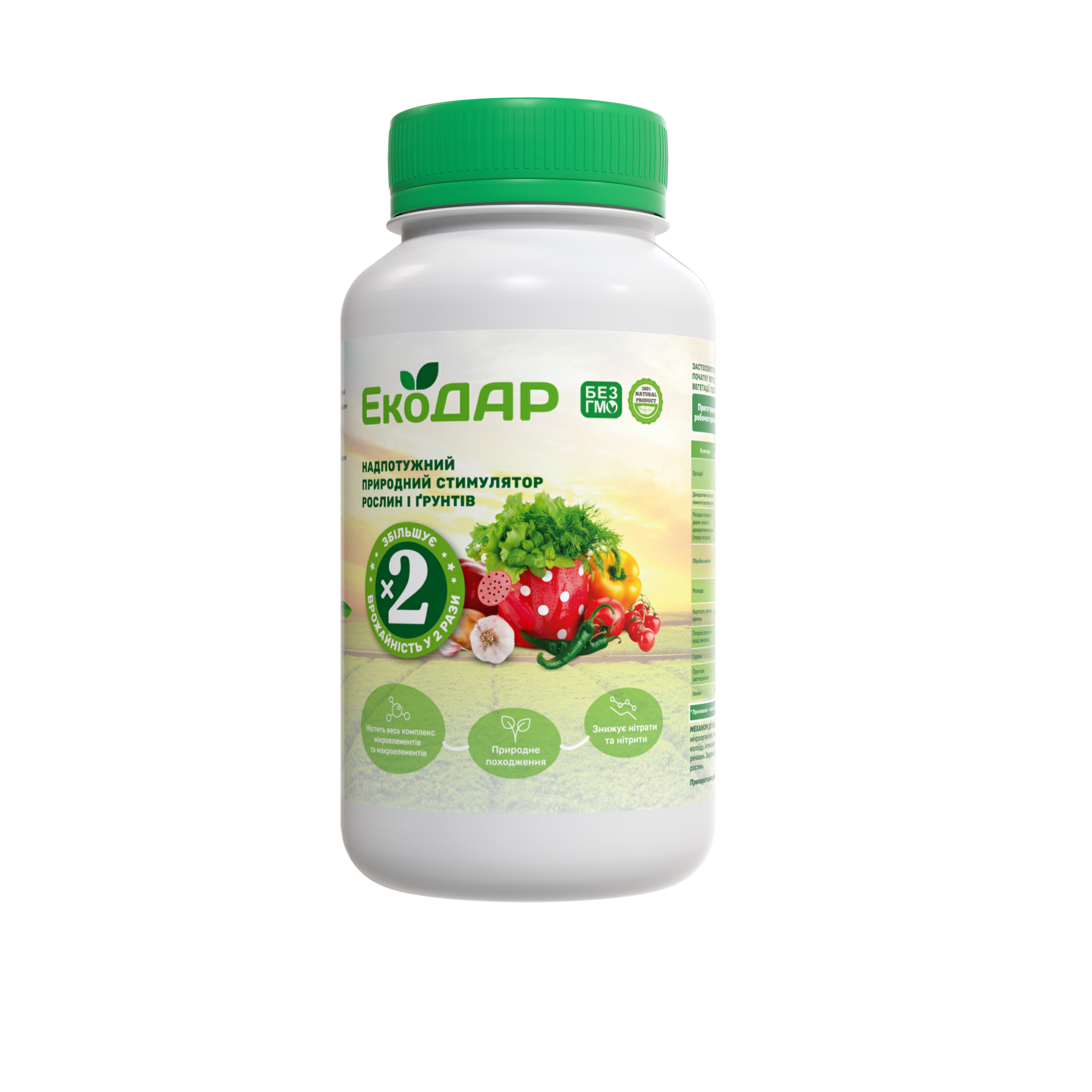 EкоДАР забезпечує комплексне харчування рослин, необхідними поживними речовинами, сприяючи покращенню їхніх фізіологічних процесів та розвитку. Це веде до збільшення врожайності, покращення якості плодів, а також збільшення стійкості рослин до стресових умов.